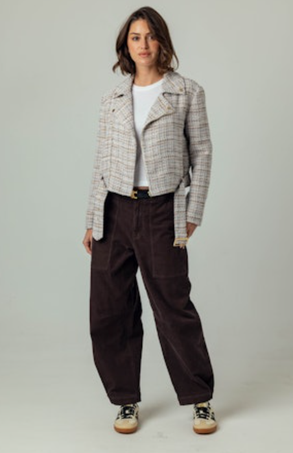 Gorgeous boucle double breasted mot jacket with waist belt.