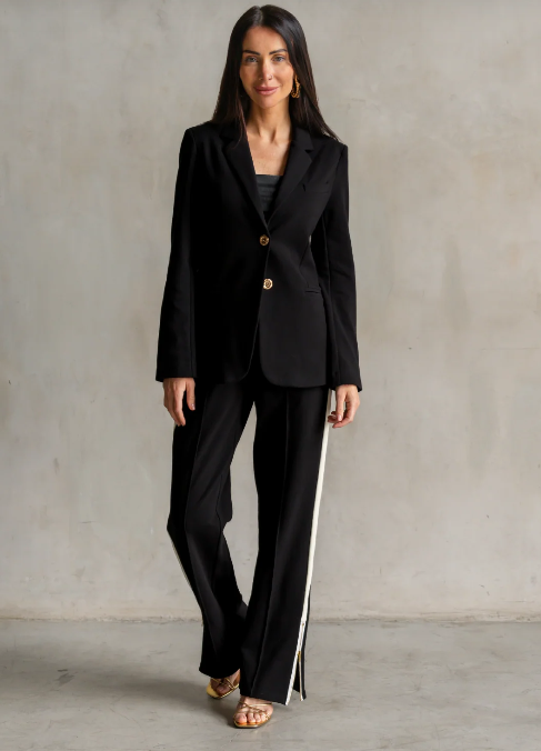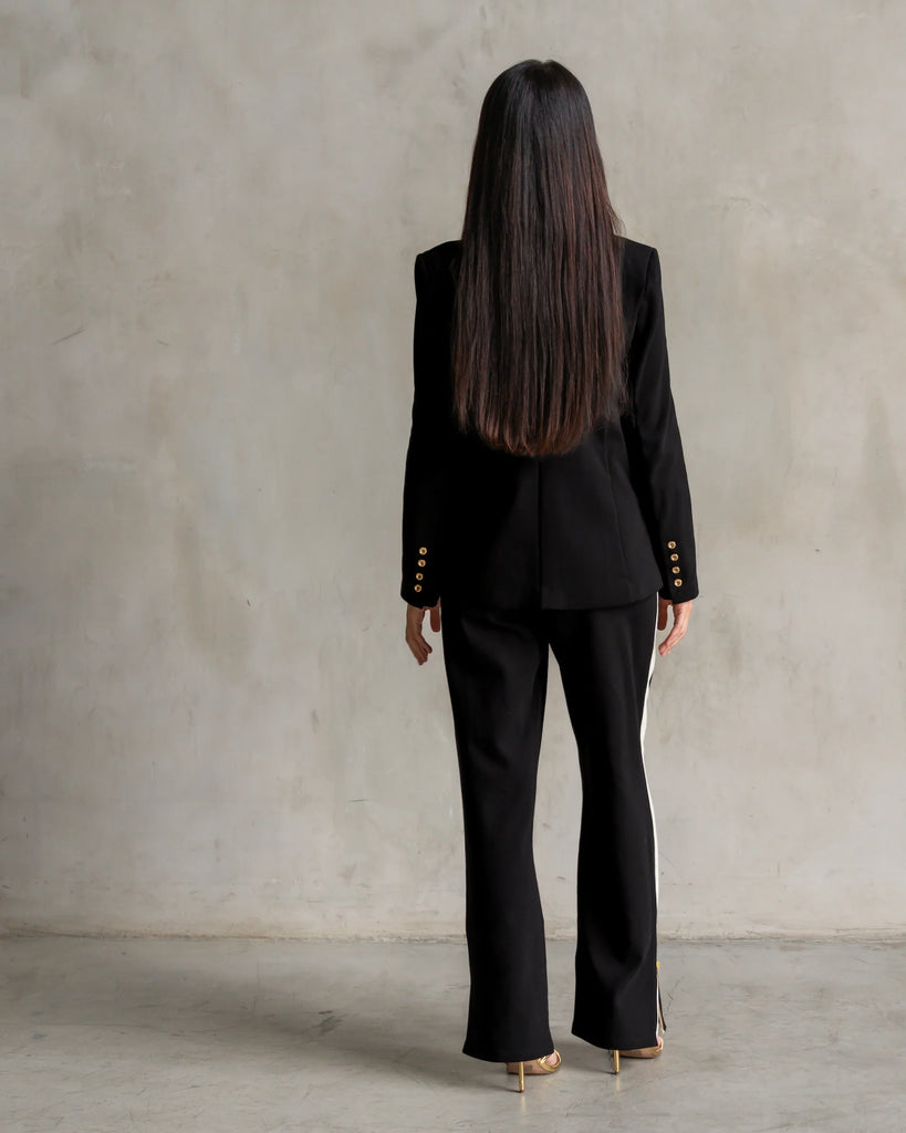 The Jordan interlock track pant is our homage to the 90’s Jordan track pant. We elevated it with a Luxé interlock fabric that is a refined process of cotton and spandex that creates a smooth finish with an extremely soft touch. This pant can be worn casually with a pair of sneakers or dresses up with heals. Paired with a tee or with the Morrison blazer she can do it all!