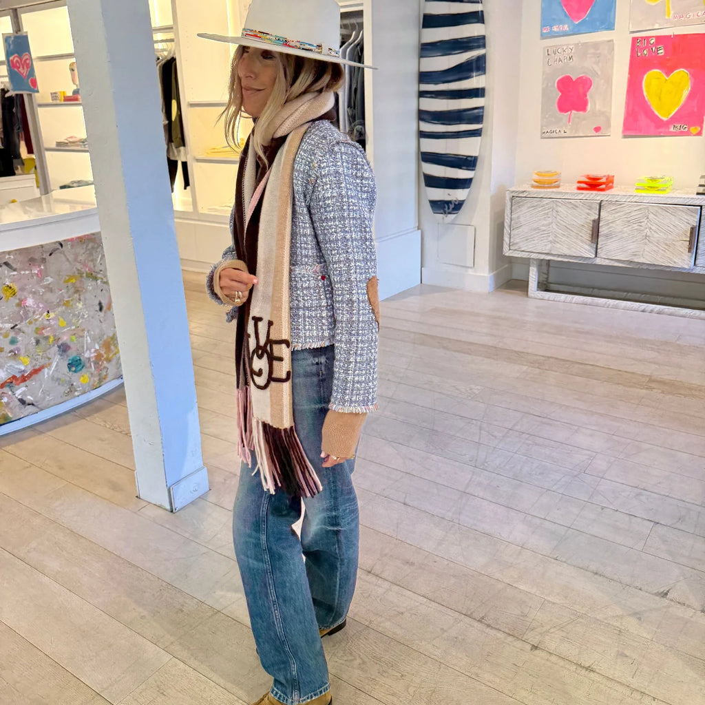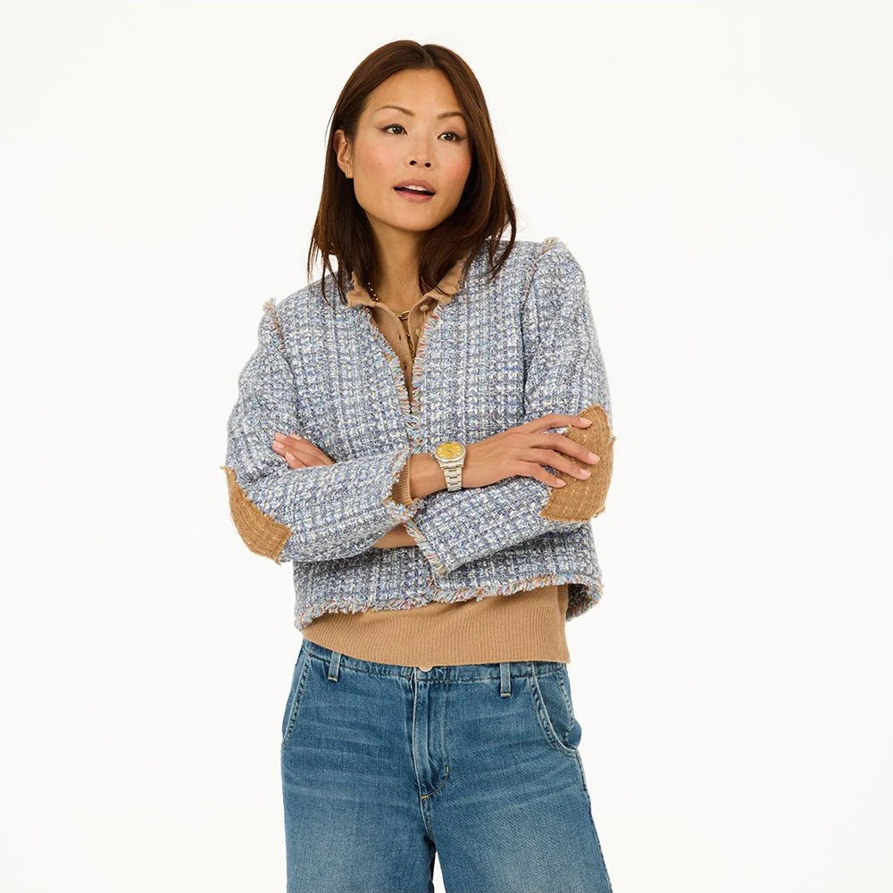 The Fringe Short Jacket will work back to any look as the perfect top layer. Made in a blue tweed, this jacket is great for the day, evening and everything in between, with an impeccable fit!