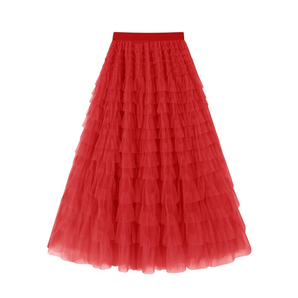 Crafted in soft, breathable mesh, this tiered silhouette floats with every step, offering beautiful volume without the weight. The comfortable elastic waistband ensures an easy, flattering fit, while the full maxi length adds a touch of drama you can dress up or down. Pair it with a fitted top for an elevated evening look or keep it casual with a simple tee and sandals.